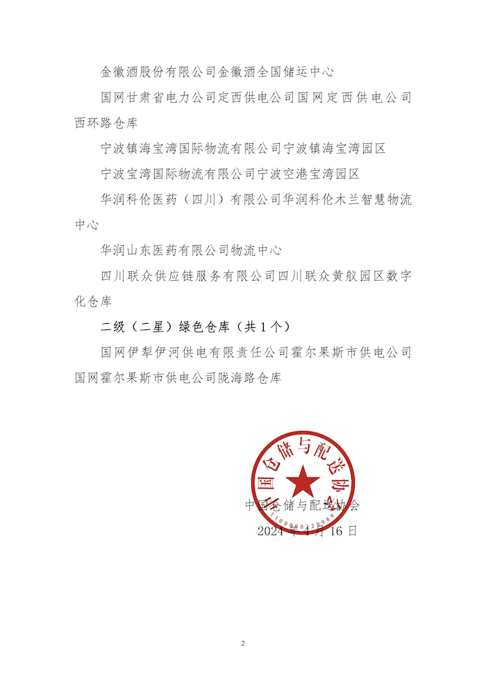 關于貴州雙龍飛天供應鏈管理有限公司貴州茅臺雙龍智慧物流園等12個綠色倉庫標識的公告