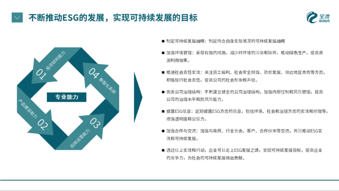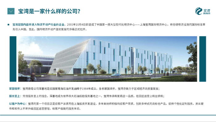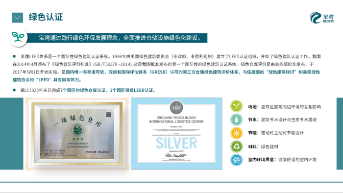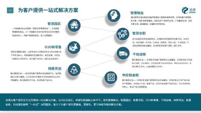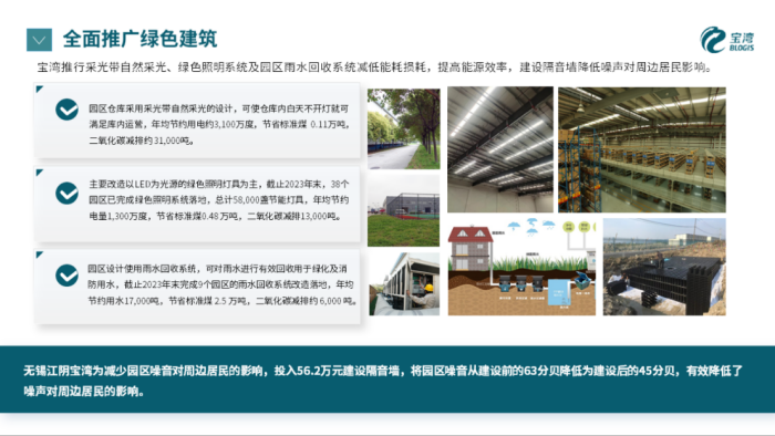 寶灣作為一家行業領先的高端物流園區開發商與運營商,堅持可持續發展理念,將ESG(環境、社會和治理)治理納入企業發展的戰略規劃中。通過建立寶灣ESG治理理念和工作體系,增強運營“軟實力”,提高資產“軟價值”,提升發展“含金量”,始終保持高度關注和積極投入,不斷優化和完善公司的ESG實踐。為有助于推進ESG的發展與加深外界對寶灣ESG管理的了解,11月30日,在由中國倉儲與配送協會主辦的2023中國倉儲配送企業家年會暨倉庫與配送中心規劃建設研討會上,寶灣正式發布了“2023年度ESG報告”,報告內容如下: